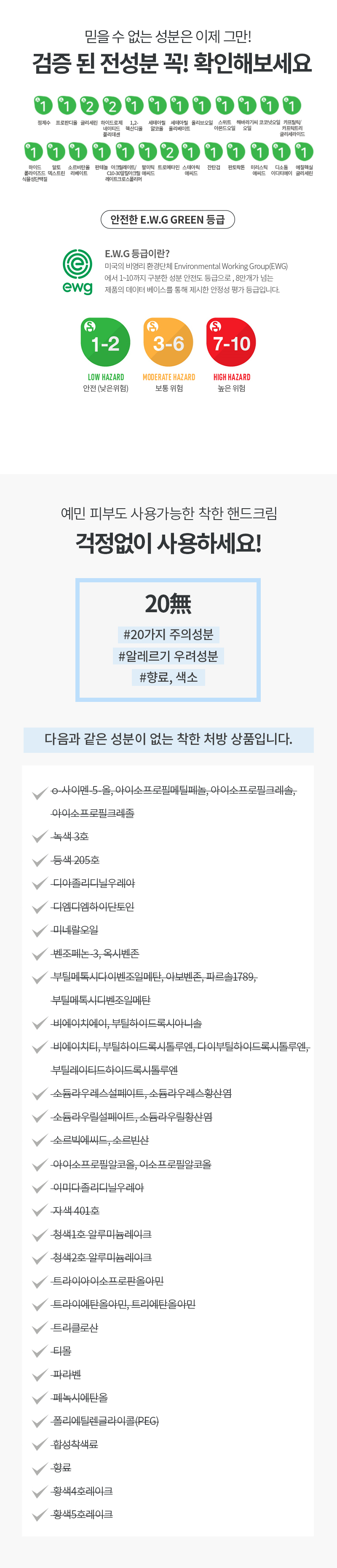 향1도 없는 무향보습의 정석! 대용량 패밀리 사이즈, 올리브영핸드크림대용량 / EWG그린, 20 유해성분제로, 알레르기 주의성분 제로