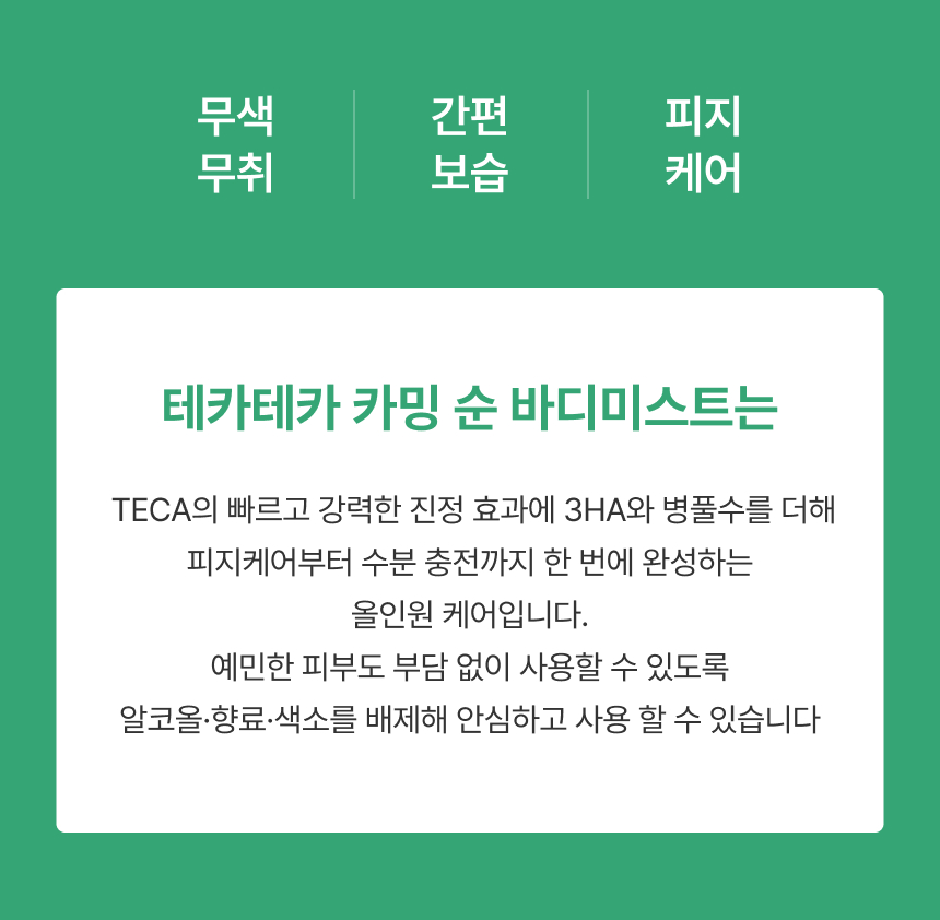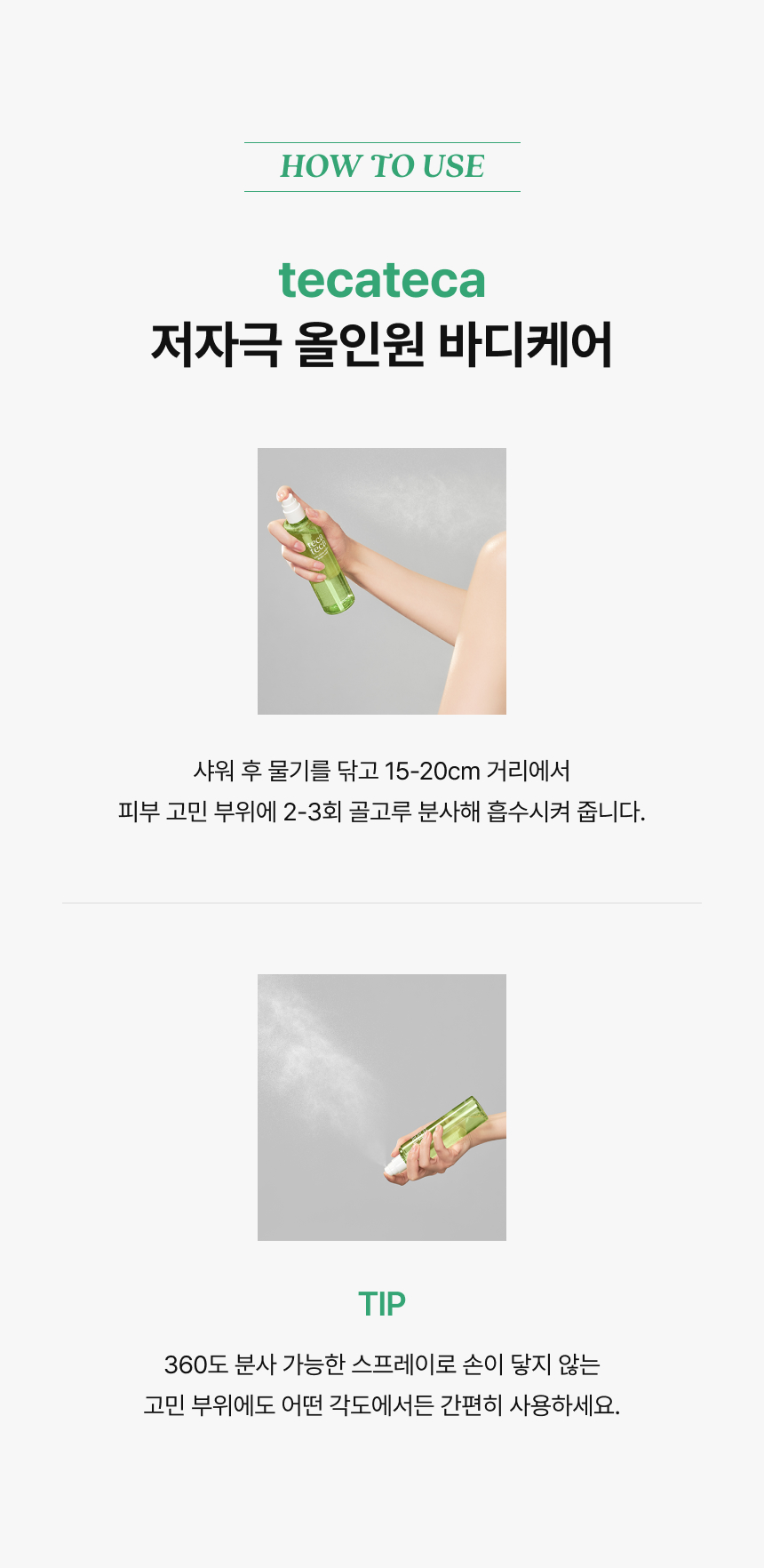적당량을 피부 고민 부위에 분사해줍니다.
