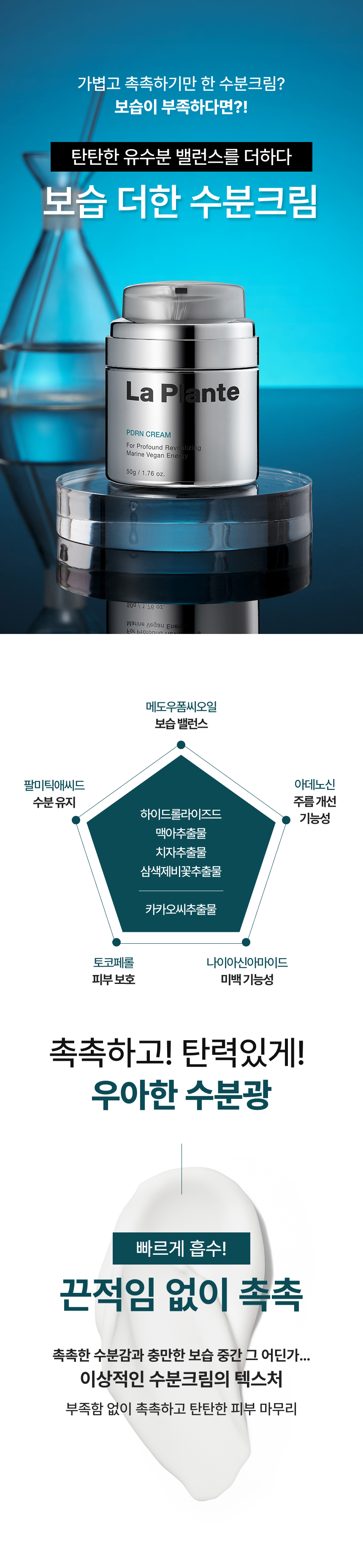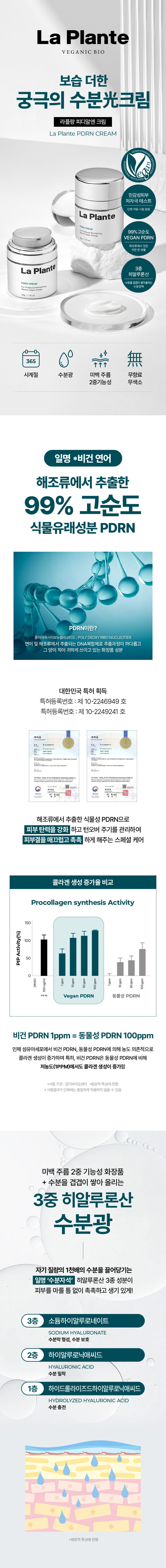 정제수, 카프릴릭/카프릭트라이글리세라이드, 부틸렌글라이콜, 글리세린, 올리브오일, 1,2-헥산다이올, 나이아신아마이드, 폴리글리세릴-2스테아레이트, 시어버터, 글리세릴스테아레이트, 스테아릴알코올, 프로판다이올, 쌀겨왁스, 카보머, 소듐카보머, 에틸헥실글리세린, 아데노신, 옥수수커넬추출물, 다이소듐이디티에이, 하이알루로닉애씨드, 하이드롤라이즈드하이알루로닉애씨드, 소듐하이알루로네이트, 프룩탄, 글루코오스, 소듐디엔에이(0.1ppm)