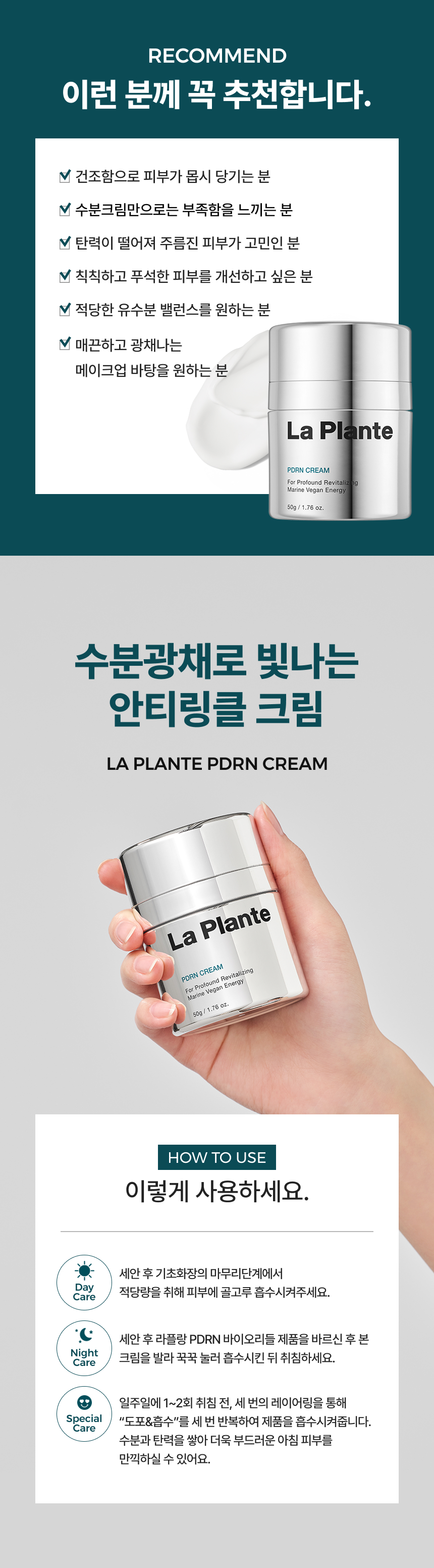 아침 저녁 기초 마지막 단계에서 본품 적당량을 취해 피부에 골고루 펴발라 흡수시킵니다.