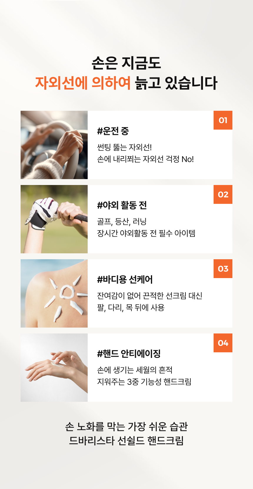 손노화 집중케어,자외선차단, 보습,미백,주름방지 효과