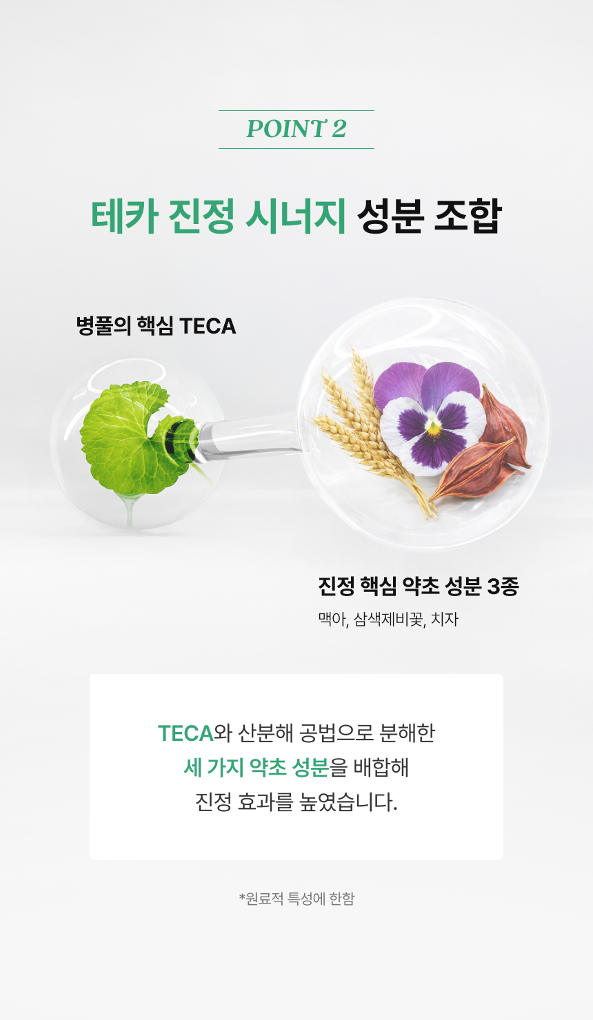 정제수, 부틸렌글라이콜, 글리세린, 티트리잎수, 글리세레스-26, 메틸글루세스-20, 나이아신아마이드, 1,2-헥산다이올, 프로판다이올, 하이드록시아세토페논, 암모늄아크릴로일다이메틸타우레이트/브이피코폴리머, 글리세레스-25피씨에이아이소스테아레이트, 펜틸렌글라이콜, 에틸헥실글리세린, 하이드롤라이즈드치자추출물, 하이드롤라이즈드맥아추출물, 하이드롤라이즈드삼색제비꽃추출물, 아데노신, 다이소듐이디티에이, 마데카소사이드, 카프릴릴글라이콜, 카프릴로일살리실릭애씨드, 데실글루코사이드, 하이알루로닉애씨드, 하이드롤라이즈드하이알루로닉애씨드, 소듐하이알루로네이트, 병풀추출물, 칸디다 봄비콜라/글루코오스/메틸레이프씨데이트발효물, 해바라기씨오일, 다이프로필렌글라이콜, 에톡시다이글라이콜, 아시아티코사이드, 아시아틱애씨드, 마데카식애씨드