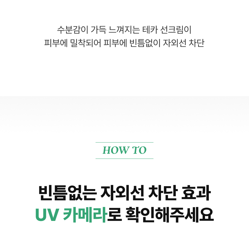 스킨케어 마지막 단계에서 얼굴과 자외선에 노출되기 쉬운 바디 부위에 골고루 펴 발라주세요.