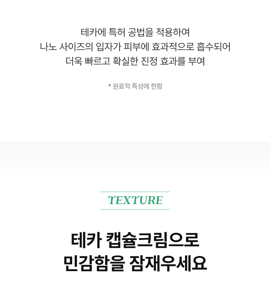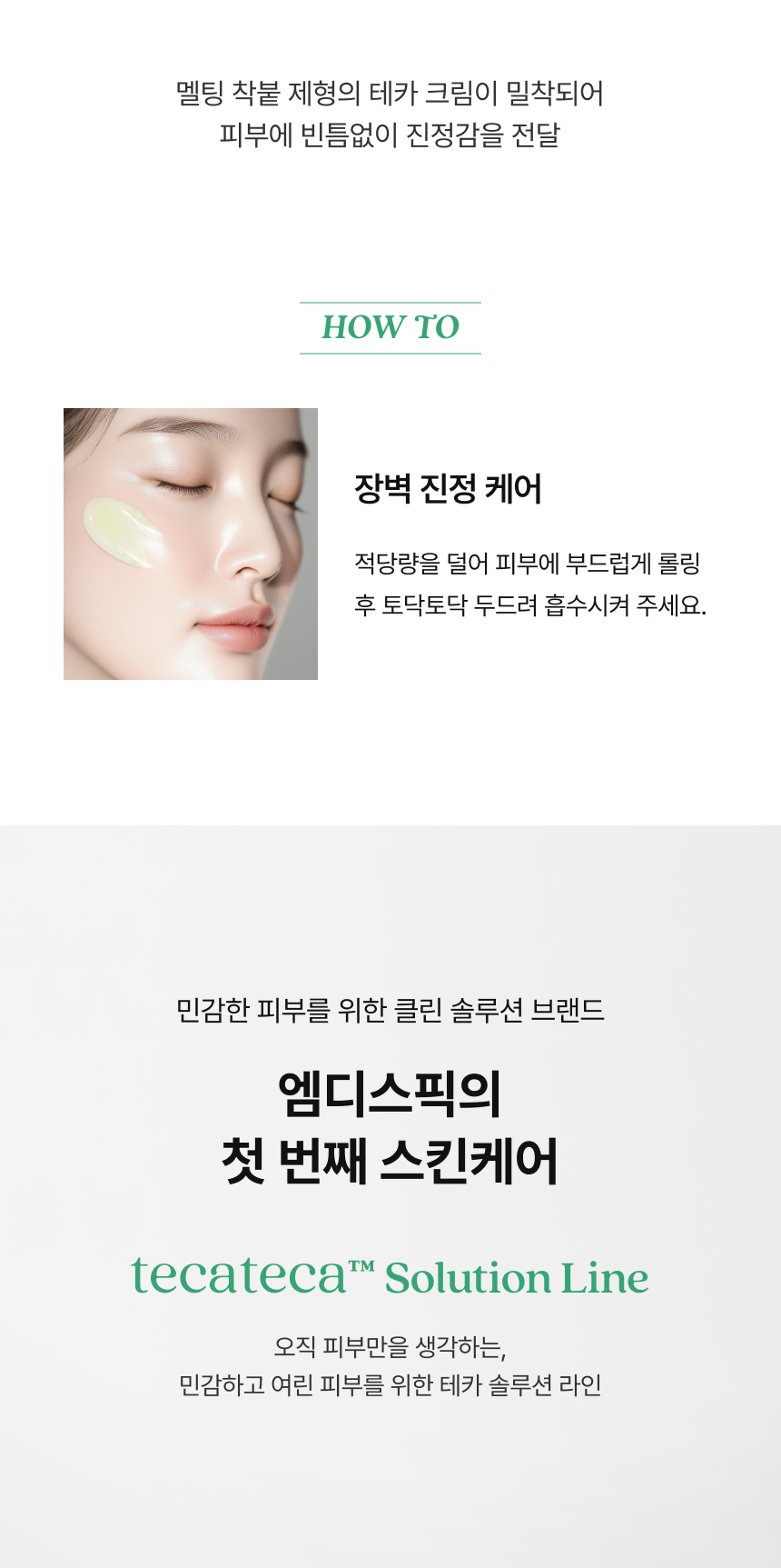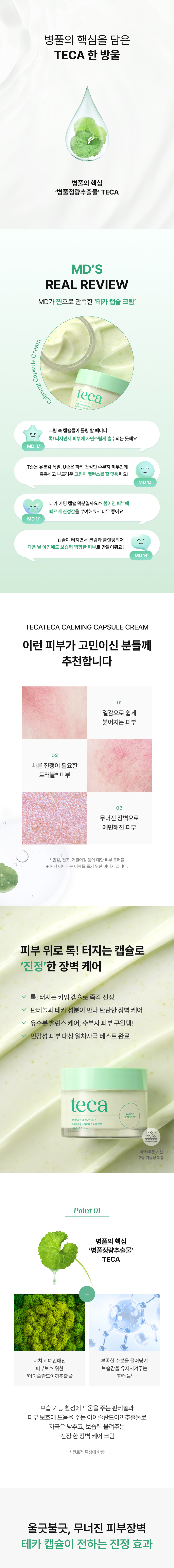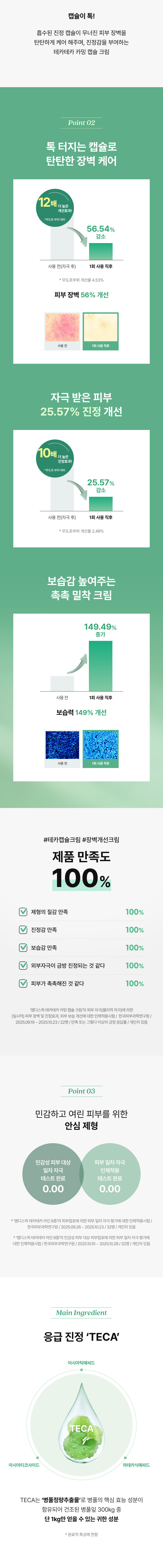 정제수, 글리세린, 에틸헥실팔미테이트, 1,2-헥산다이올, 나이아신아마이드, 하이드로제네이티드폴리아이소부텐, 세테아릴알코올, 세테아릴올리베이트, 호호바씨오일, 하이드록시에틸아크릴레이트/소듐아크릴로일다이메틸타우레이트코폴리머, 부틸렌글라이콜, 카프릴릭/카프릭트라이글리세라이드, 솔비탄올리베이트, 비닐다이메티콘, 세테아릴글루코사이드, 하이드록시아세토페논, 에틸헥실글리세린, 황련뿌리추출물, 솔비탄아이소스테아레이트, 아데노신, 아크릴레이트/C10-30알킬아크릴레이트크로스폴리머, 다이소듐이디티에이, 트라이소듐에틸렌다이아민다이석시네이트, 판테놀, 유비퀴논, 말라카이트추출물, 알지닌, 토코페롤, 아시아티코사이드(41ppb), 구아이아줄렌, 마데카식애씨드(34ppb), 아시아틱애씨드(25ppb), 포스포리피드, 시트릭애씨드, 아이슬란드이끼추출물