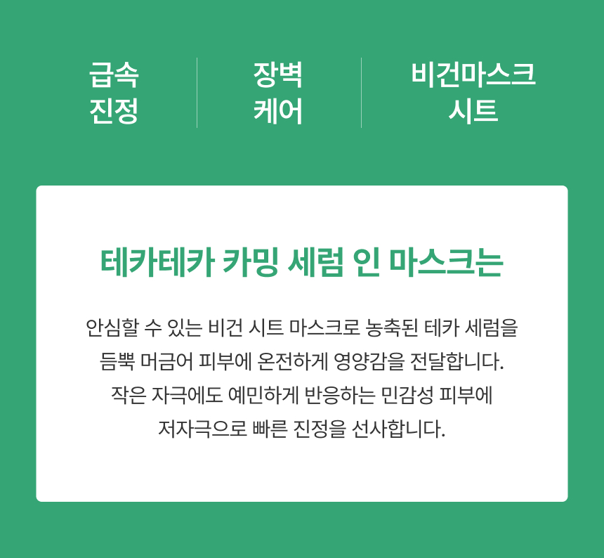 정제수, 글리세린, 프로판다이올, 다이프로필렌글라이콜, 메틸프로판다이올, 판테놀, 베타인, 다이글리세린, 하이드록시아세토페논, 폴리글리세릴-10라우레이트, 카프릴릴글라이콜, 알지닌, 카보머, 에틸헥실글리세린, 잔탄검, 1,2-헥산다이올, 다이포타슘글리시리제이트, 부틸렌글라이콜, 소듐하이알루로네이트, 로즈마리잎추출물, 하이드로제네이티드레시틴, 하이드롤라이즈드하이알루로닉애씨드, 나이아신아마이드, 바이오사카라이드검-1, 마데카소사이드(1,000ppb), 소듐아세틸레이티드하이알루로네이트, 아시아티코사이드(40ppb), 아시아틱애씨드(30ppb), 마데카식애씨드(30ppb), 다이소듐이디티에이