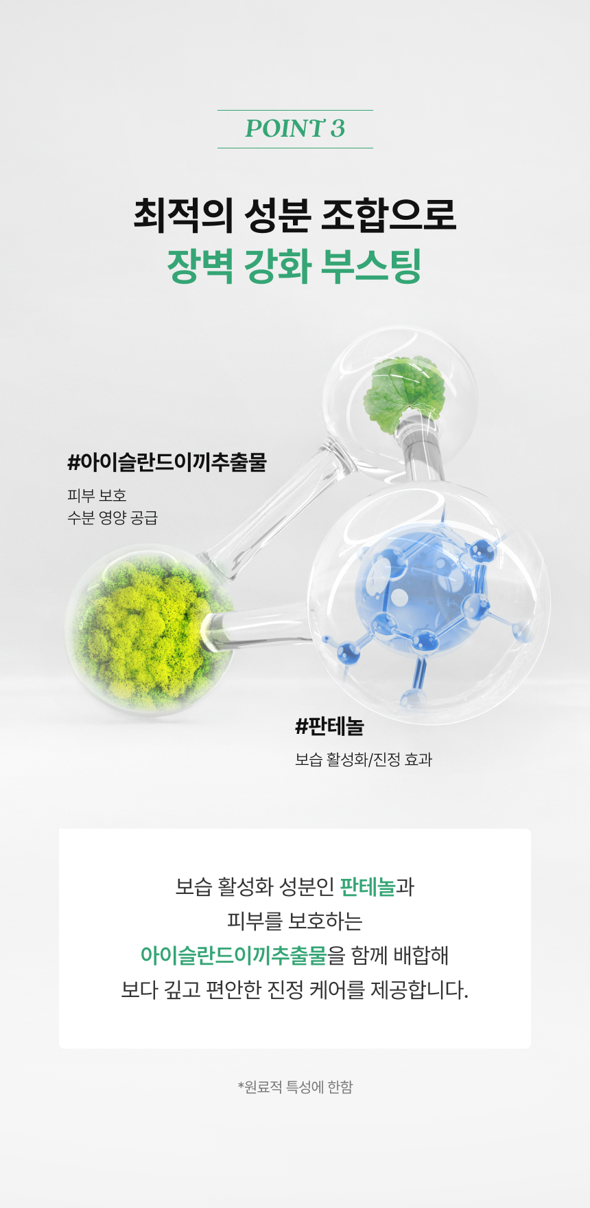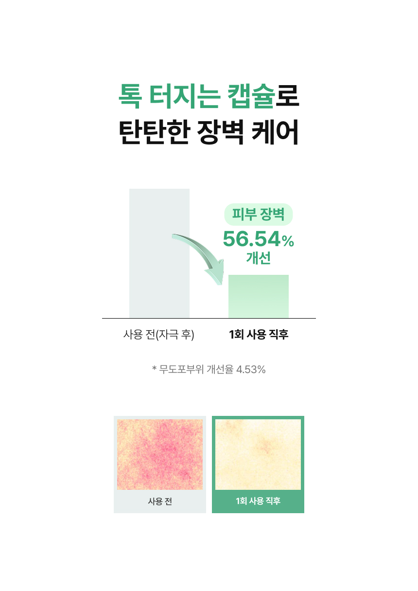 밀도 높은 쫀쫀한 수분감으로 진정+장벽+보습케어