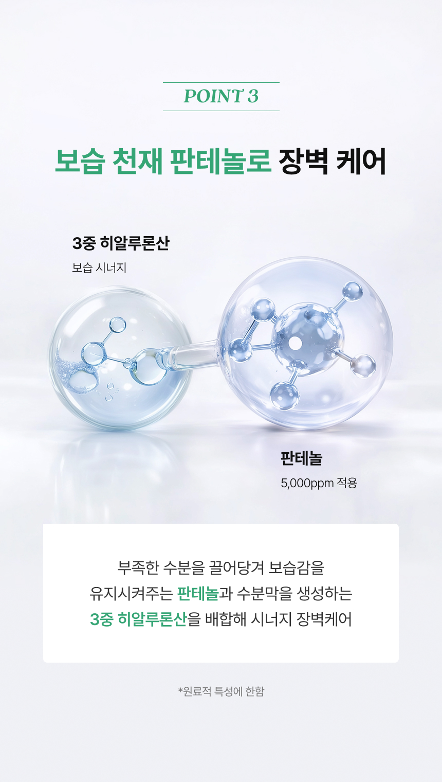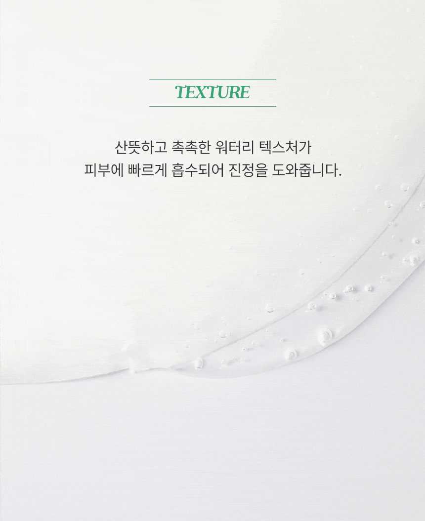 정제수, 글리세린, 프로판다이올, 다이프로필렌글라이콜, 메틸프로판다이올, 판테놀, 베타인, 다이글리세린, 하이드록시아세토페논, 폴리글리세릴-10라우레이트, 카프릴릴글라이콜, 알지닌, 카보머, 에틸헥실글리세린, 잔탄검, 1,2-헥산다이올, 다이포타슘글리시리제이트, 부틸렌글라이콜, 소듐하이알루로네이트, 로즈마리잎추출물, 하이드로제네이티드레시틴, 하이드롤라이즈드하이알루로닉애씨드, 나이아신아마이드, 바이오사카라이드검-1, 마데카소사이드(1,000ppb), 소듐아세틸레이티드하이알루로네이트, 아시아티코사이드(40ppb), 아시아틱애씨드(30ppb), 마데카식애씨드(30ppb), 다이소듐이디티에이